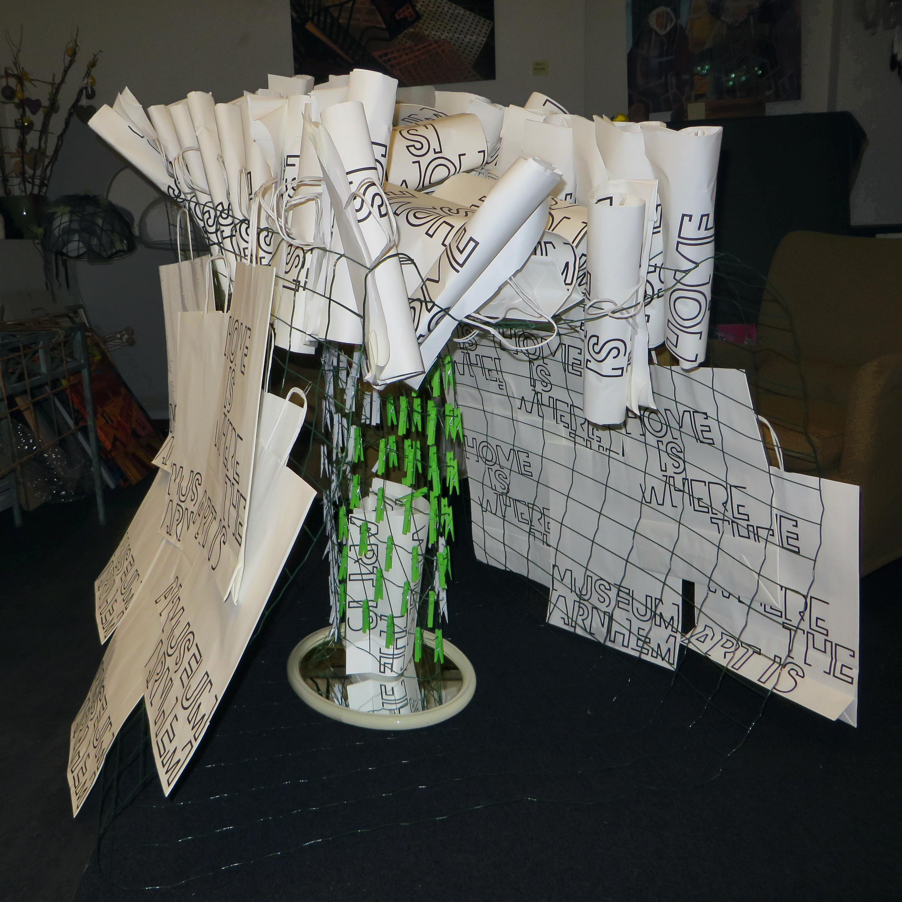 Bronzen beelden maak ik al geruime tijd niet meer. Wel andere vooral tijdelijke driedimensionale werken. Deze staan ten dele op deze website. de meeste breek ik na verloop van tijd weer af.